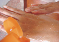 | Olesan Scrub terasa kasar, berpasir terasa sakit |